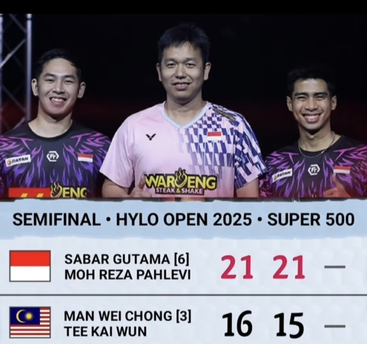 Akhirnya Sabar/Reza mampu menurut Kemenangan dengan skor 21-15. Kemenangan tersebut, Sabar/Reza amankan tiket Final dan berpeluang menjuarai turnamen Hylo Open 2025.