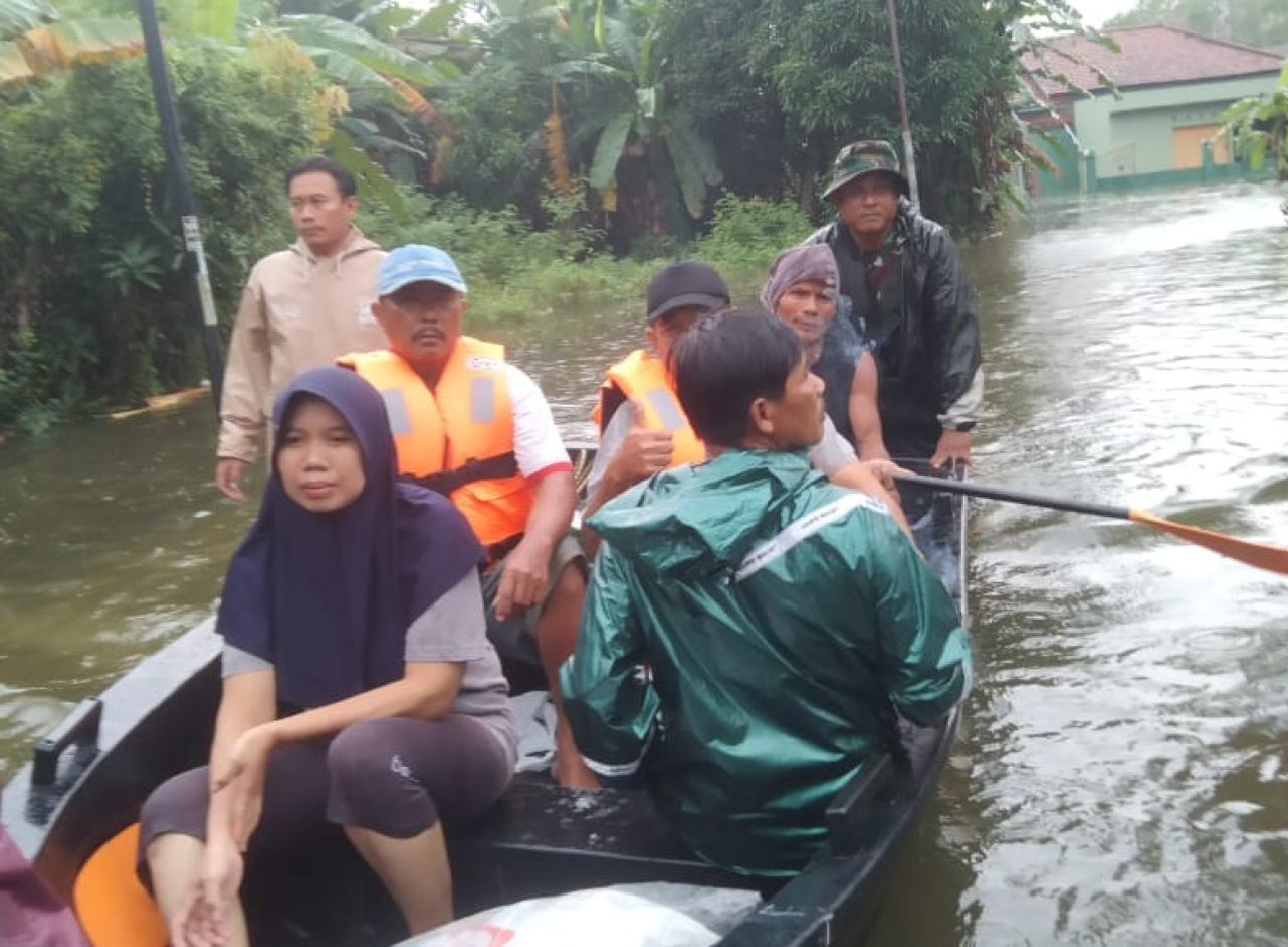 Perahu evakuasi bolak-balik mengangkut warga, mulai dari anak-anak, ibu-ibu hingga lansia. Air banjir terpantau cukup tinggi, mencapai 1 hingga 2 meter di area persawahan, 50 hingga 80 sentimeter di jalan desa, serta 30 hingga 50 sentimeter di dalam rumah warga.