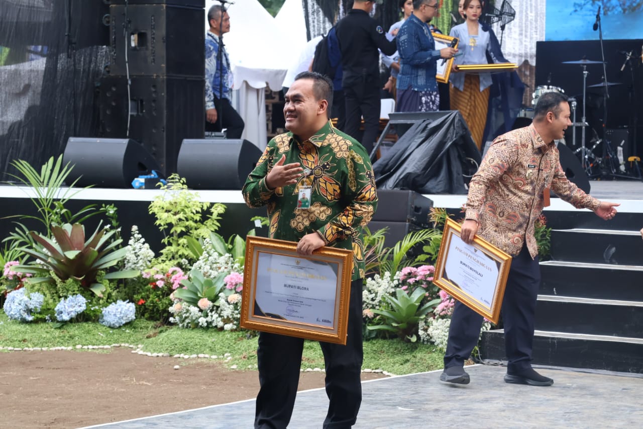 Bupati Blora, H. Arief Rohman, menerima penghargaan sebagai kepala daerah inovatif dalam pengembangan desa tematik ketahanan pangan padi organik dari Menteri Desa dan Pembangunan Daerah Tertinggal, Yandri Susanto.