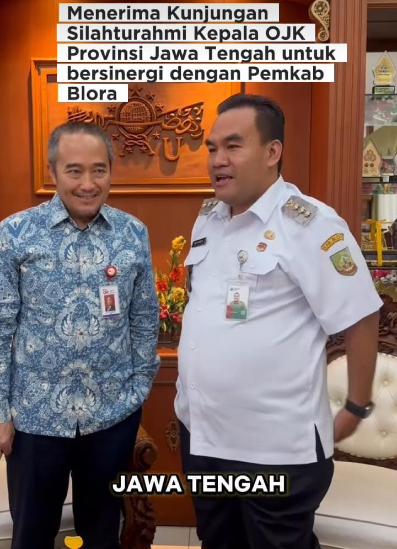 Blora, MEMANGGIL.CO - Bupati Blora Arief Rohman menerima kunjungan silaturahmi Kepala Otoritas Jasa Keuangan (OJK) Provinsi Jawa Tengah, Hidayat Prabowo, dalam rangka memperkuat sinergi antara OJK dan Pemerintah Kabupaten Blora, Jumat (30/01/2026).