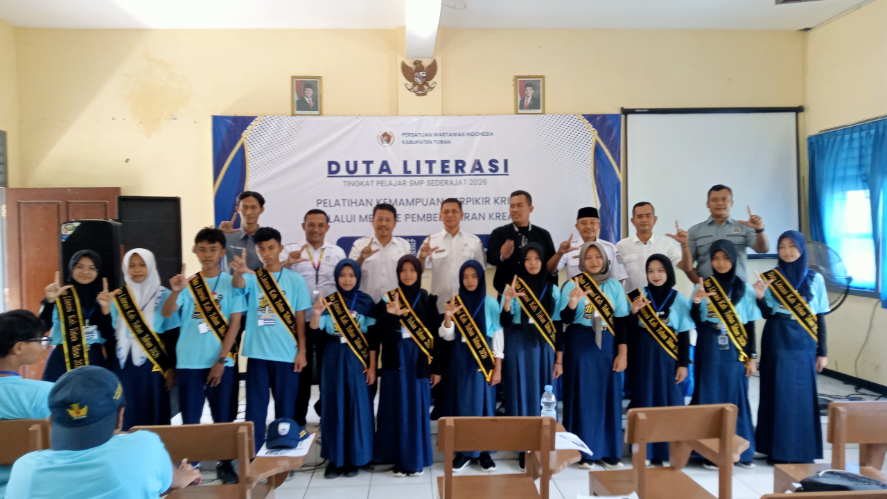 Tuban, MEMANGGIL.CO – Persatuan Wartawan Indonesia (PWI) Kabupaten Tuban resmi menutup kegiatan Duta Literasi Pelajar jenjang Sekolah Menengah Pertama (SMP)/sederajat se-Kabupaten Tuban. Dari program tersebut, sebanyak 125 pelajar dinobatkan sebagai Duta Literasi tahun 2026.