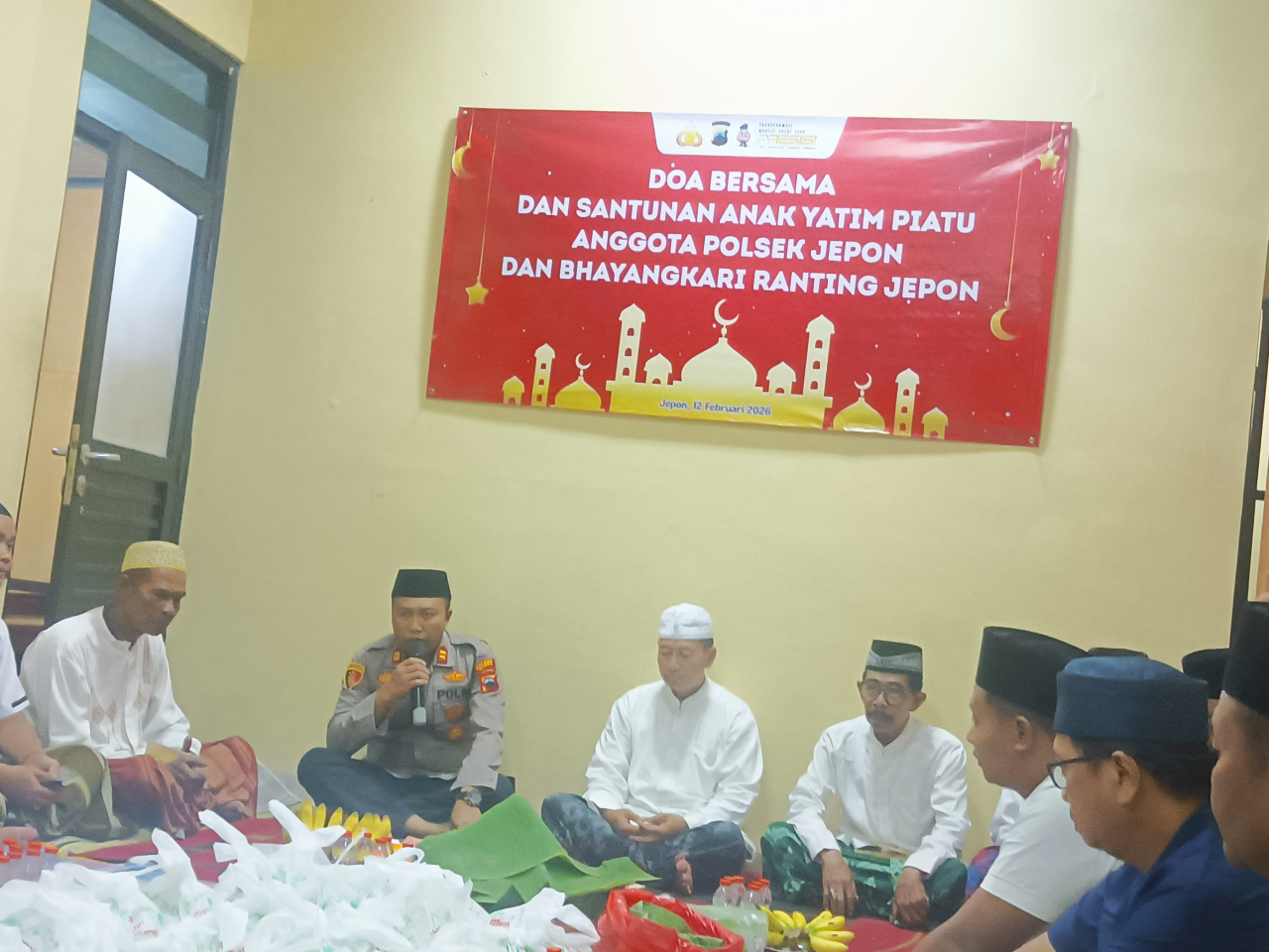 Kapolsek Jepon, IPTU H.M. Junaidi, dalam sambutannya menyampaikan bahwa doa bersama sengaja dilaksanakan pada malam Jumat yang bertepatan dengan wetonnya sebagai momentum untuk memperbanyak doa dan memohon keberkahan.