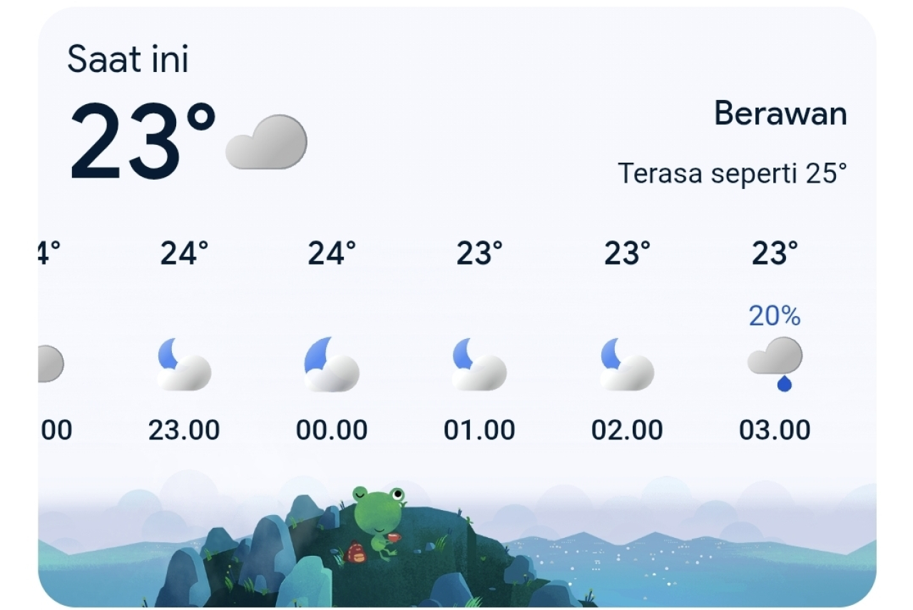 Memasuki pagi hingga menjelang siang, suhu udara diprediksi meningkat secara bertahap dari 25 hingga 28 derajat Celsius. Pada rentang waktu pukul 11.00 hingga 13.00 WIB, mulai terdapat potensi hujan ringan dengan peluang berkisar 20 hingga 30 persen.
