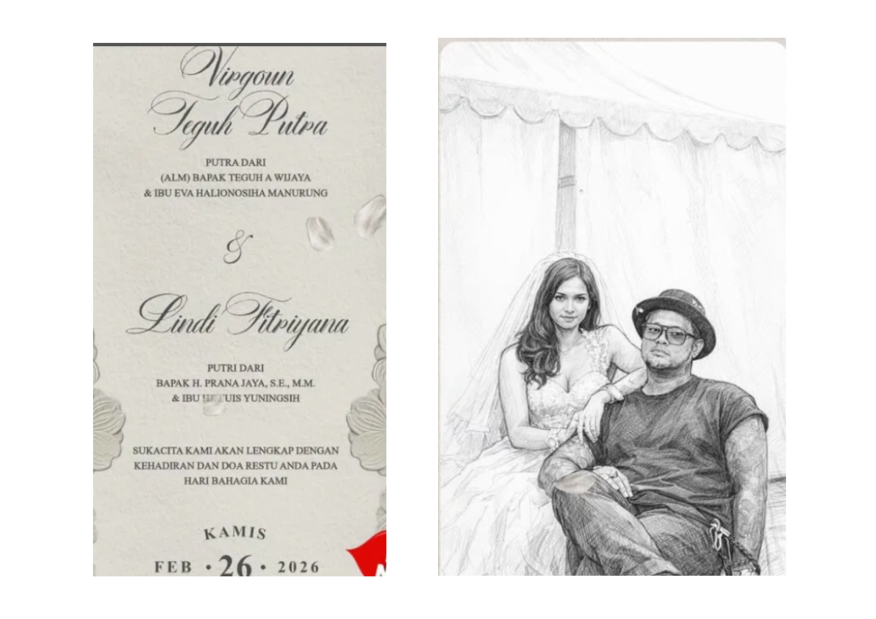 Jakarta, MEMANGGIL.CO – Jagat maya mendadak heboh! Undangan pernikahan Virgoun, vokalis hits Last Child, bocor dan viral di media sosial. Dalam undangan yang beredar luas itu, Virgoun disebut akan melangsungkan akad nikah dengan Lindi Fitriyana, Kamis 26 Februari 2026.