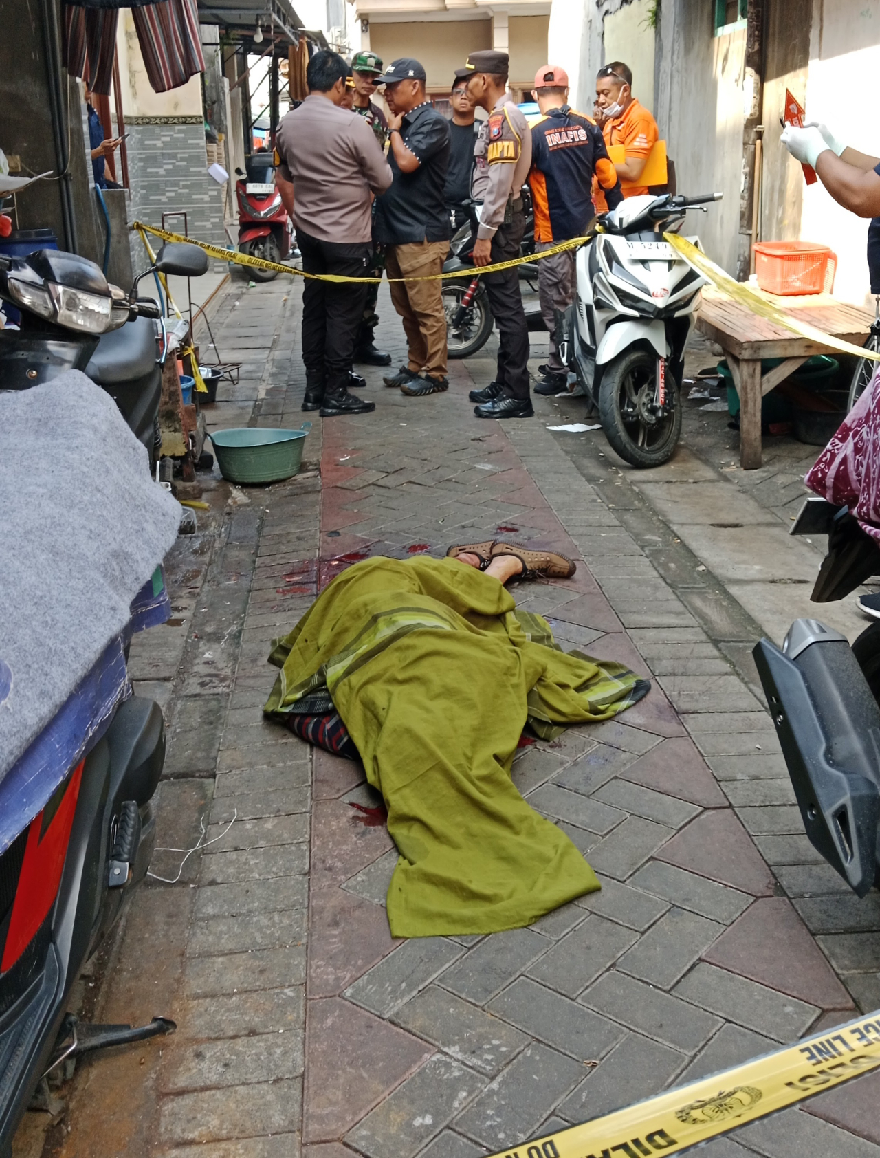 Surabaya, MEMANGGIL.CO - Warga Jl. Pragoto RT 04 RW 04 Kecamatan Simokerto Surabaya digegerkan dengan tewasnya Muhammad Jais (57) warga setempat yang ditemukan tergeletak dalam kondisi mengenaskan di jalanan kampung, Kamis (23/04/2026).