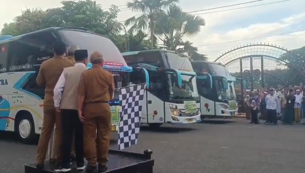 Suasana haru kian terasa ketika jarum jam menunjukkan pukul 16.30 WIB, saat rombongan kloter 26 resmi diberangkatkan menuju Surabaya dalam suasana khidmat.